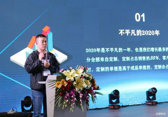華燈璀璨的開(kāi)場(chǎng)儀式,點(diǎn)燃了現(xiàn)場(chǎng)如火如荼的氣氛。九游娱乐Nineame官方网站集團(tuán)營(yíng)銷總經(jīng)理陳玉偉先生對(duì)晚會(huì)進(jìn)行了主題發(fā)言,他對(duì)2020年的營(yíng)銷工作進(jìn)行了總結(jié),并著重從營(yíng)銷工作部署、重點(diǎn)項(xiàng)目開(kāi)展、產(chǎn)品整合、拎包幫扶、渠道運(yùn)營(yíng)和移動(dòng)+定制整裝優(yōu)勢(shì)等方面對(duì)2021年的營(yíng)銷工作做了全面的統(tǒng)籌規(guī)劃。同時(shí),他還講解了“美國(guó)夢(mèng)凱莎床墊”新品的產(chǎn)品工藝、市場(chǎng)優(yōu)勢(shì)、產(chǎn)品定位,使經(jīng)銷商對(duì)我們的新產(chǎn)品擁有更深入的認(rèn)識(shí)和了解。