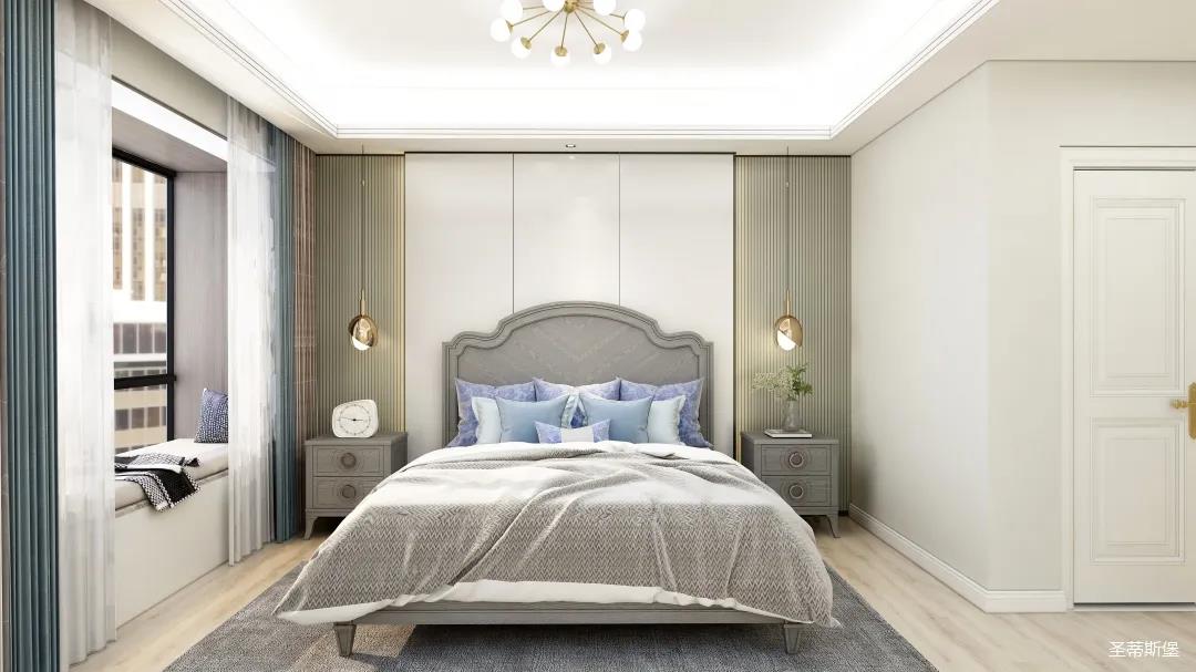 主臥根據(jù)表姐的個人喜好設(shè)計(jì),她非常滿意~