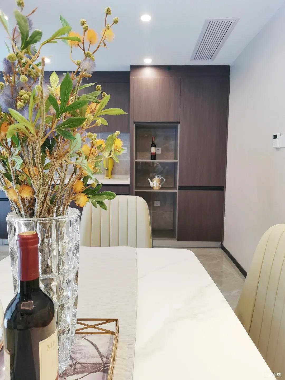 客餐廳雖屬同層,但由廊道隔開,各有寬闊的空間格局,加上引入自然光源的采光設(shè)計(jì),空間通透明亮。巖板餐桌搭配的真皮餐椅,讓不同的材質(zhì)在在空間完美契合,既增加了空間的時(shí)尚氛圍,也能給人良好的用餐體驗(yàn)。
