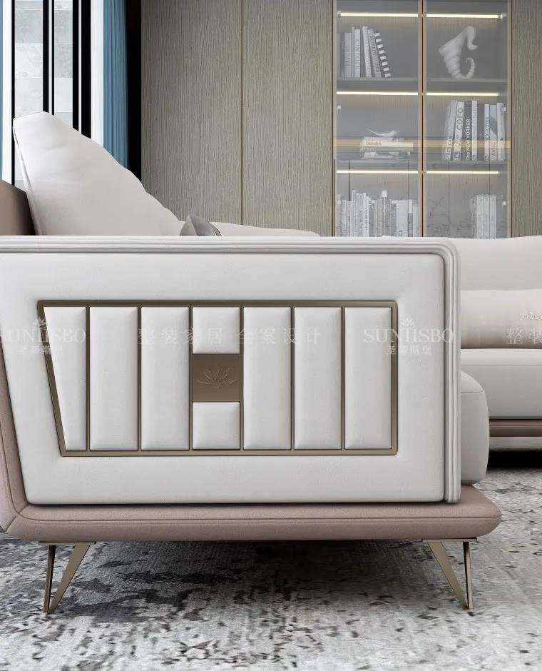 如果只是單純追求外在的簡約設計,如上所述,由于其造型線條簡單,缺乏裝飾形狀且裝飾元素很少,那么它的裝飾性就沒這么強,它的感覺更在當下的流行性,而不是長遠的裝飾性,我們洛斯系列在強調(diào)外形簡約的同時,講究內(nèi)在細節(jié)的豐富,科技木皮嵌入與超纖藝術皮革飾面、實木藝術雕刻等,將產(chǎn)品的審美細節(jié)提升上來,以表現(xiàn)出更好的美感。沒有裝飾元素,空間會感到單調(diào),這些具有獨特設計甚至極富創(chuàng)意的個性化裝飾元素,打破了洛斯在造型簡約上帶來的單調(diào)感與呆板感,將審美周期大幅度的延長。