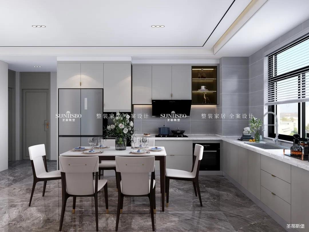 餐廚采用開放式布局,實(shí)現(xiàn)開闊明朗的公共空間,也提高了居家交流互動的便利性。減少不必要的物件,加上合理的設(shè)計(jì),布局出和諧安全的居家環(huán)境。