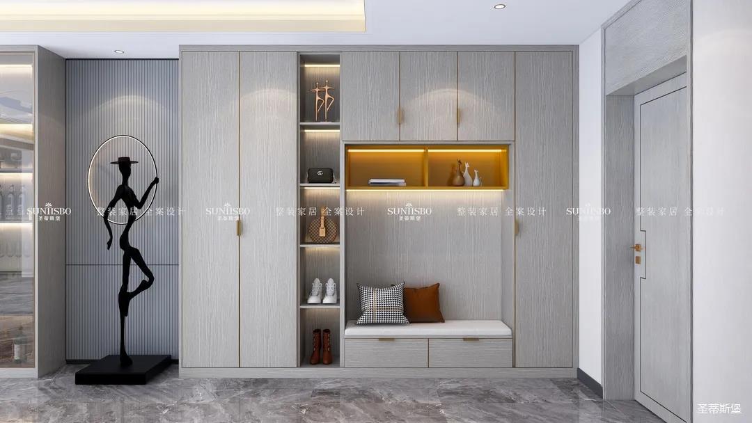 玄關極具人性化設計,一字型定制柜體沿邊而立,打破了傳統(tǒng)的設計模式,讓入戶動線更流暢。高級灰+明亮黃作為時尚圈中佼佼者,讓空間在沉穩(wěn)與雀躍的碰撞中融合,令空間在沉穩(wěn)的氣息中注入一絲活躍,帶來一種驚艷人心的美感。
