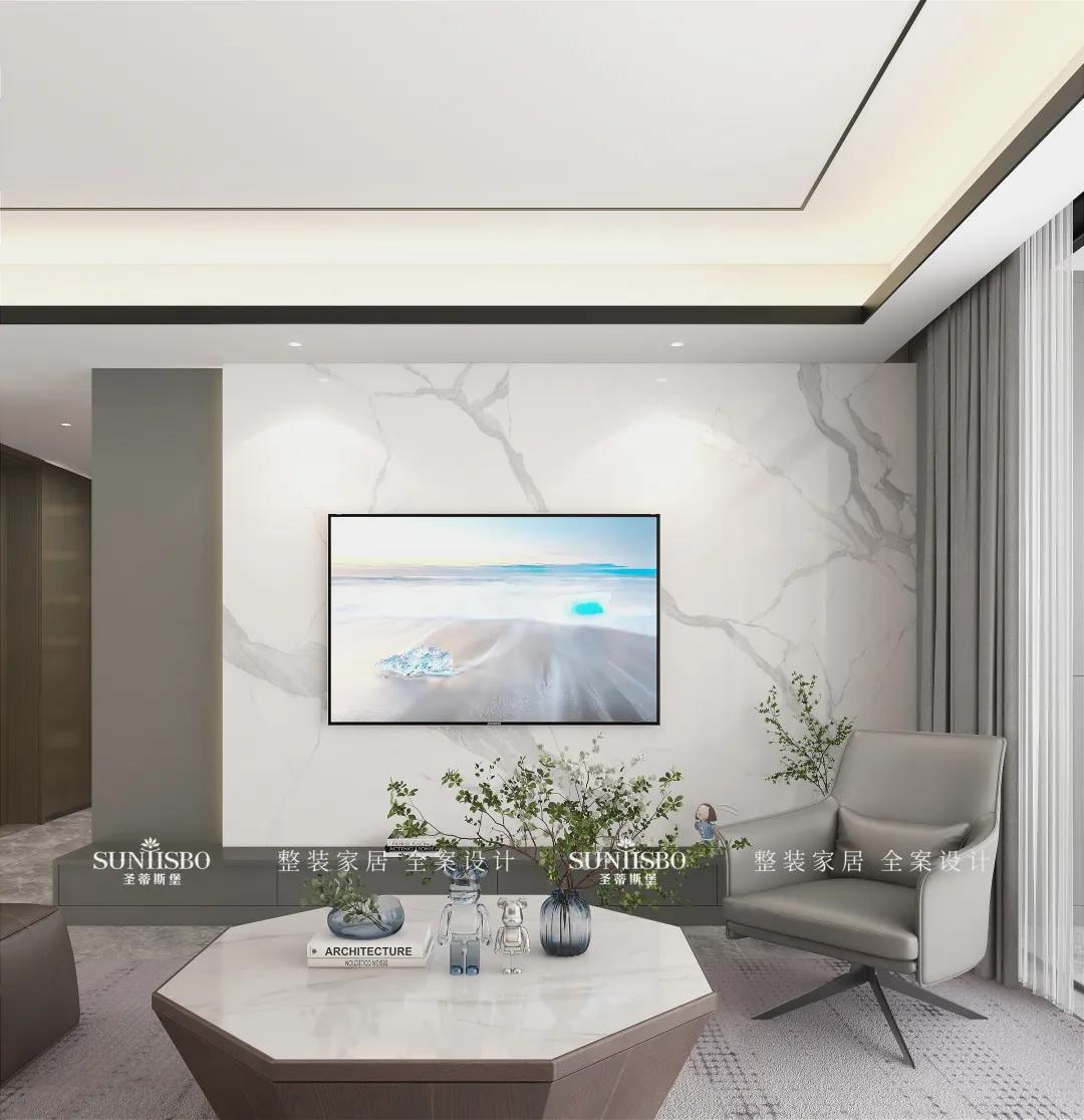 客廳根據(jù)業(yè)主太太的喜好而設(shè)計(jì),茶幾采用純天然爵士白大理石,自然天成的石材紋理,通過留白的藝術(shù)表現(xiàn)手法,營(yíng)造出自然靈動(dòng)、沉穩(wěn)時(shí)尚的意境。從細(xì)節(jié)處彰顯對(duì)生活的態(tài)度與追求,打造高品位的現(xiàn)代家居。