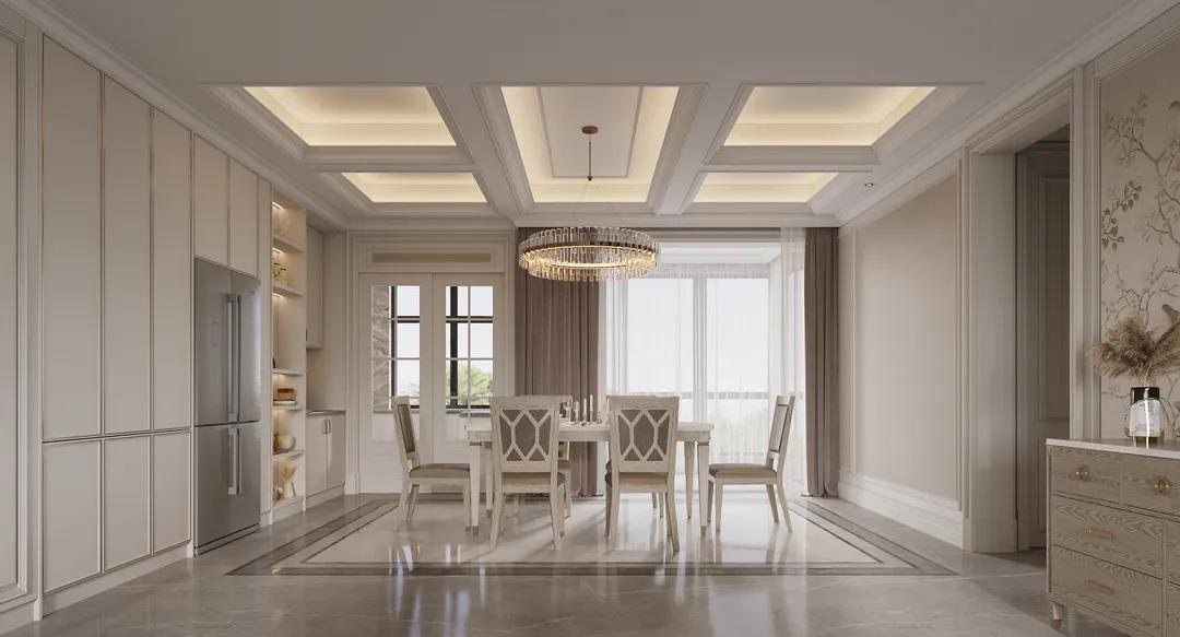 美輪美奐的天花吊頂,巧奪天工的護墻線雕,硬朗的美式線條和明亮金屬的輕奢質(zhì)感,均展現(xiàn)著高雅與浪漫的生活腔調(diào)。