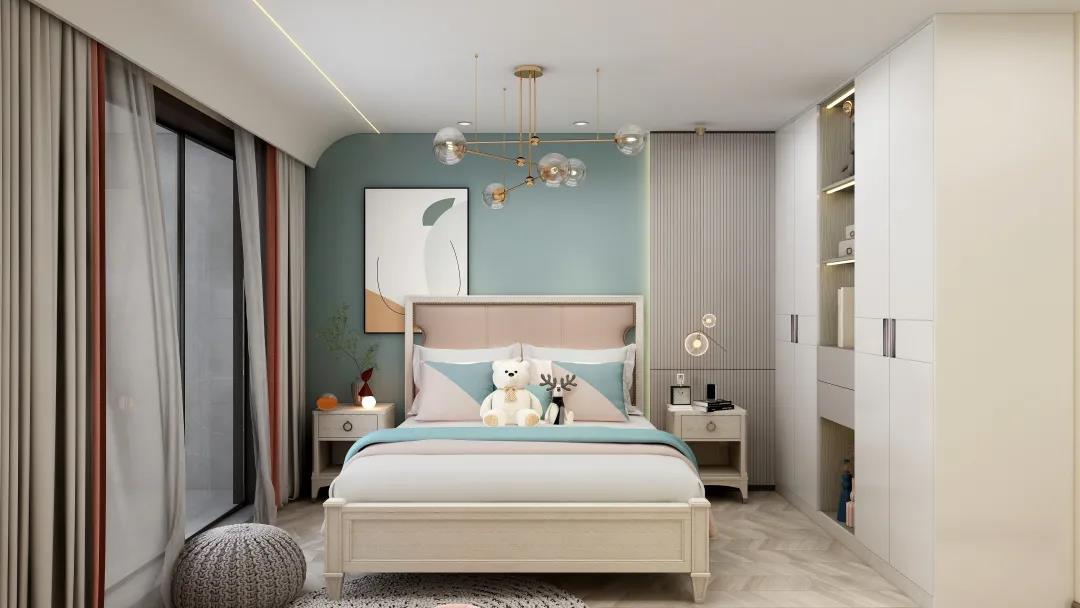 次臥淺灰色的背景墻時(shí)尚又內(nèi)斂,入目盡顯舒適的視覺(jué)感,為了避免過(guò)于單調(diào),特意搭配了與整體保持一致的拼色窗簾,作為空間色彩的點(diǎn)綴。