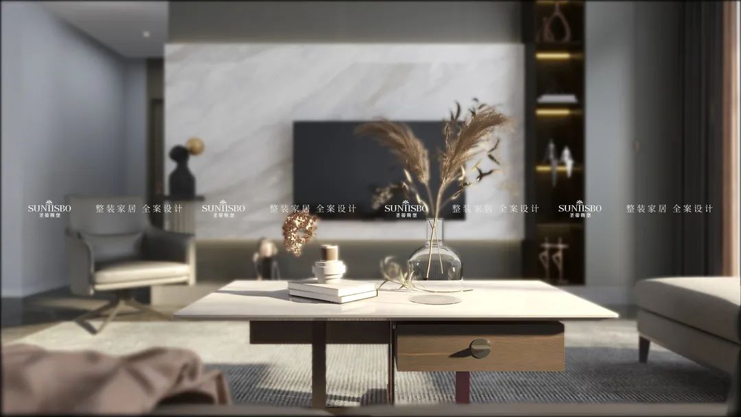 本案業(yè)主本人是一對年輕的90后小夫妻,他們對設(shè)計要求較高,崇尚極簡主義生活,也具有一定的藝術(shù)審美標準。本案設(shè)計師與業(yè)主溝通后,設(shè)計初稿就得到肯定,在形式材質(zhì)上大量運用石材、木材、玻璃、皮革,搭配簡約的家具,注重整體統(tǒng)一,表達居住者和諧統(tǒng)一又獨特審美的生活方式。
