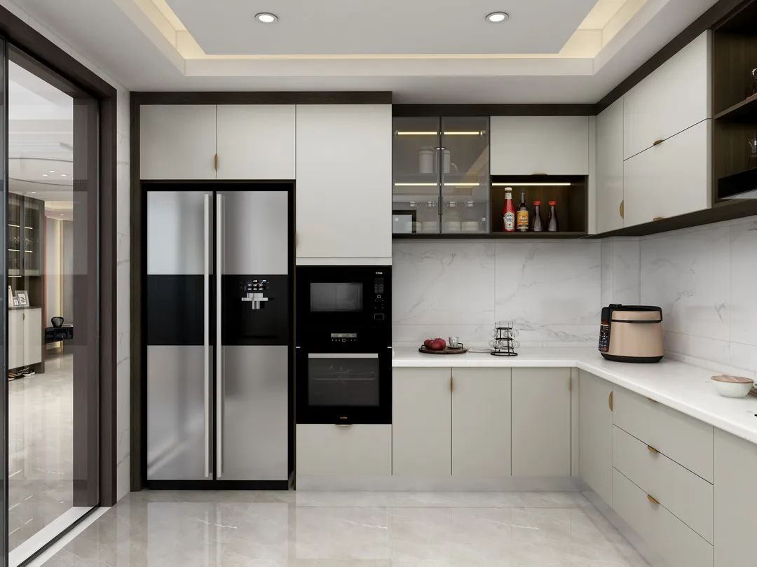 廚房以自然簡約的高級色調(diào)塑造出時尚的效果,