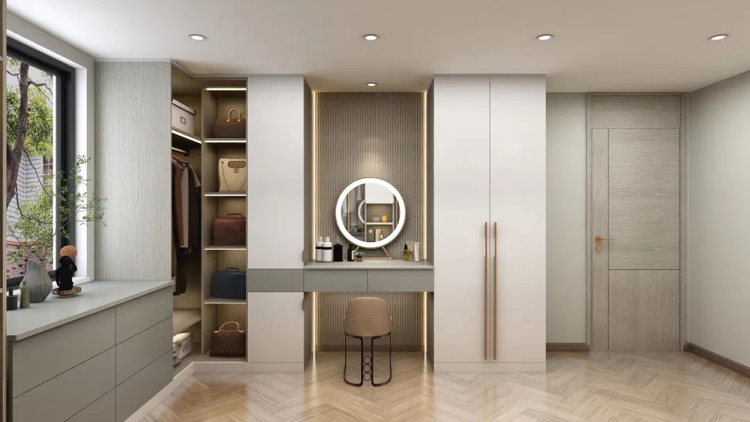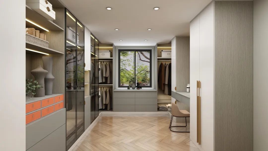 獨(dú)立衣帽間色調(diào)柔和,造型簡約