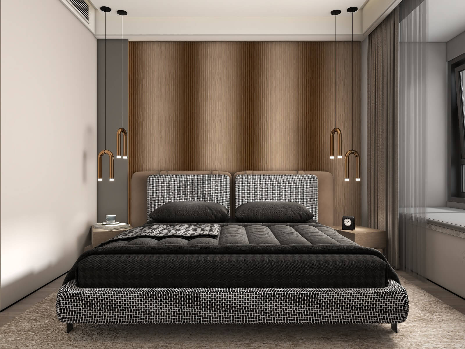 暗調(diào)的臥室靜靜的訴說日子的平和,沒有繁瑣的點(diǎn)綴,在簡(jiǎn)約中回歸到純樸,讓身心在靜謐中得到治愈與陶冶。
